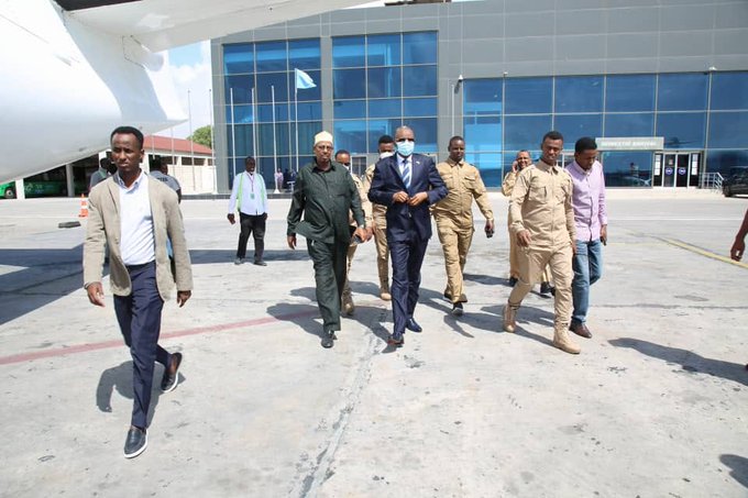 Madaxweyne Cabdicaiis Lafta-gareen oo Goordhow ka ambabaxay Garoonka diyaaradaha Aadan Cadde ee Muqdisho ayaa waxaa socdaalkiisa ku wehlinaya Wasiiro, Xildhibaano iyo Mas’uuliyiin ka tirsan Maamulka koonfur Galbeed.