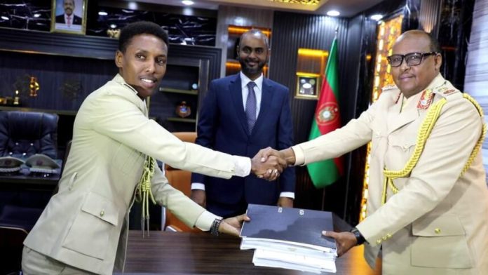 Wasiirka ayaa sidoo kale xilalka u kala wareejiyay Taliyihii hore ee ciidanka dhulka Jeneraal Maxamed Tahliil Biixi iyo Taliyaha cusub Jeneraal Axmed Aadan Cali.